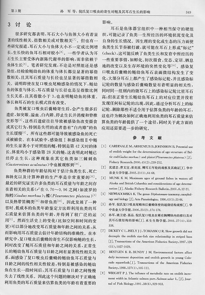 倪氏復(fù)口吸蟲的寄生對(duì)鰱及其耳石生長(zhǎng)的影響4