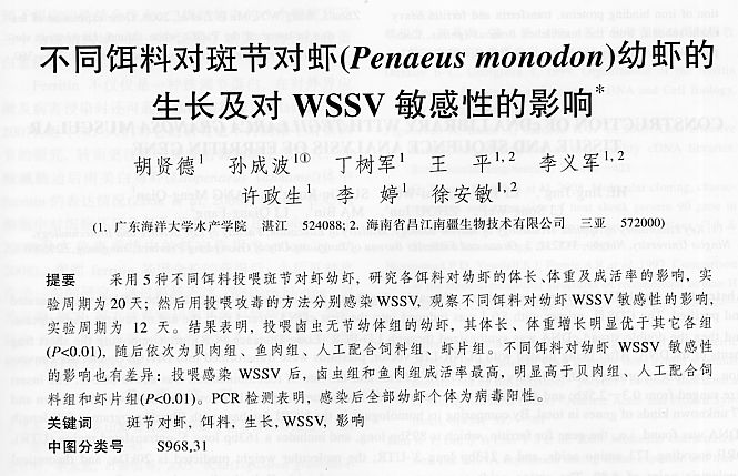 不同餌料對(duì)斑節(jié)對(duì)蝦幼蝦的生長及對(duì)WSSV敏感性的影響
