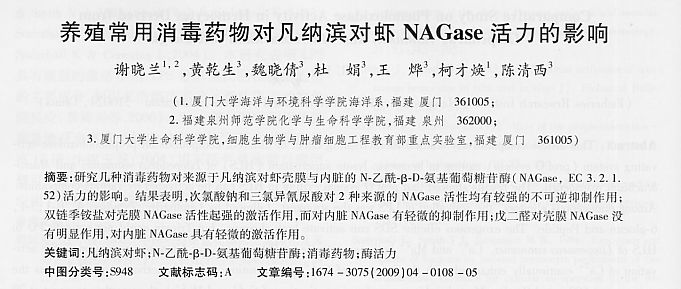養(yǎng)殖常用消毒藥物對凡納濱對蝦NAGase活力的影響