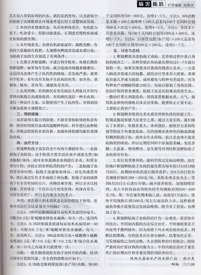 框鏡鯉粘孢子蟲病防治新技術(shù)2