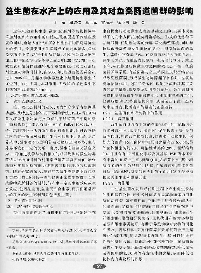益生菌在水產(chǎn)上的應(yīng)用及其對魚類腸道菌群的影響1