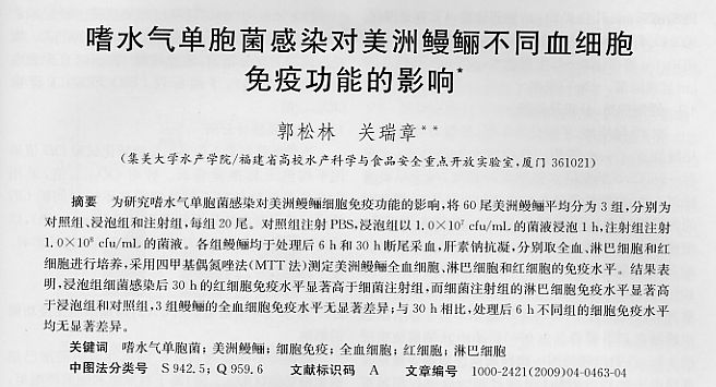 嗜水氣單胞菌感染對美洲鰻鱺不同血細胞免疫功能的影響