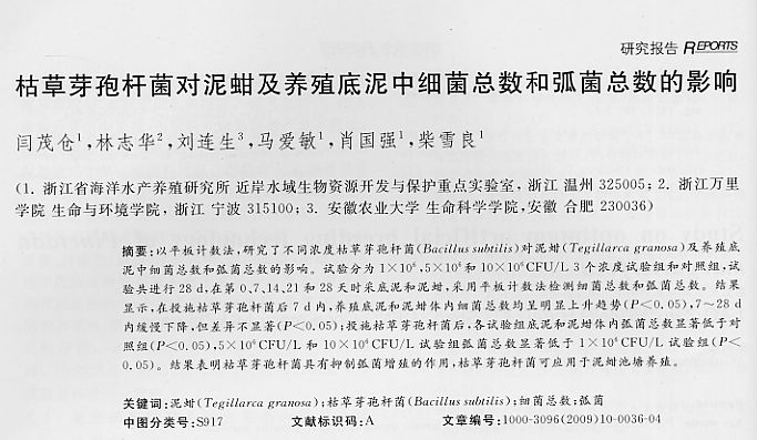 枯草芽孢桿菌對泥蚶及養(yǎng)殖底泥中細(xì)菌總數(shù)和弧菌總數(shù)的影響