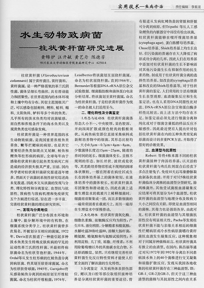水生動物致病菌--柱狀黃桿菌研究進(jìn)展1