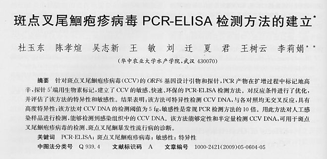 斑點(diǎn)叉尾鮰皰疹病毒PCR-ELISA檢測(cè)方法的建立