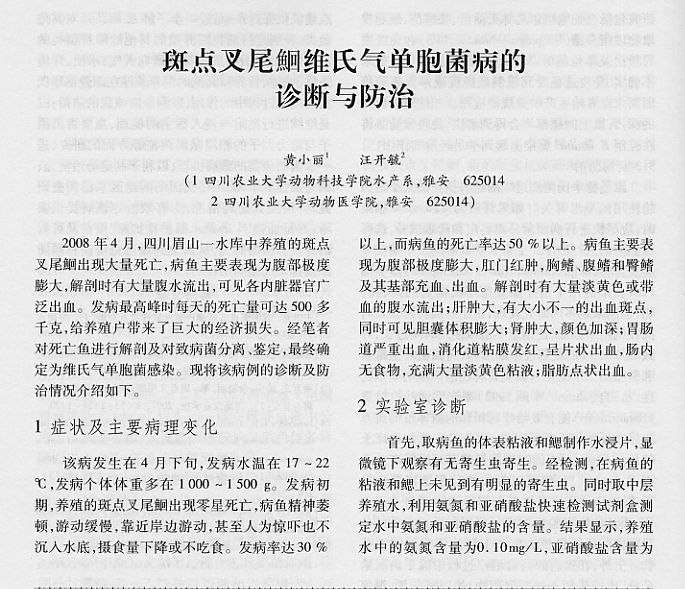 斑點叉尾鮰維氏氣單胞菌病的診斷與防治1