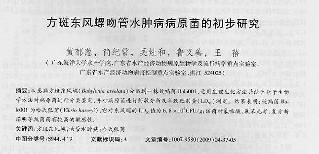方斑東風(fēng)螺吻管水腫病病原菌的初步研究