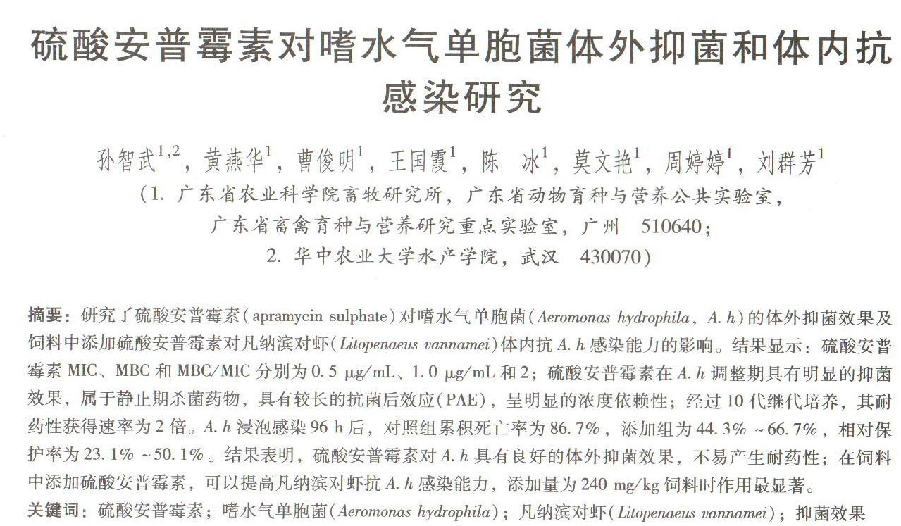 硫酸安普霉素對(duì)嗜水氣單胞菌體外抑菌何體內(nèi)抗感染研究