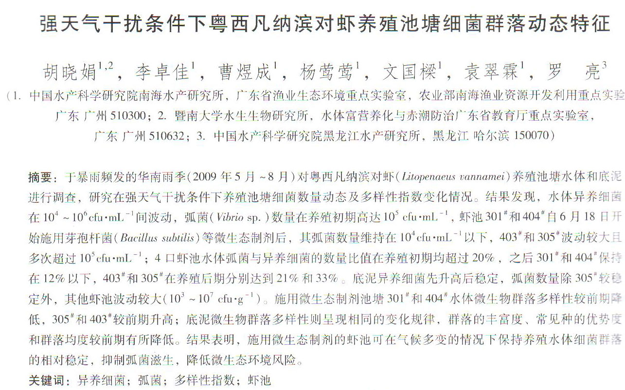 強(qiáng)天氣干擾條件下粵西凡納濱對(duì)蝦養(yǎng)殖池塘細(xì)菌群落動(dòng)態(tài)特征