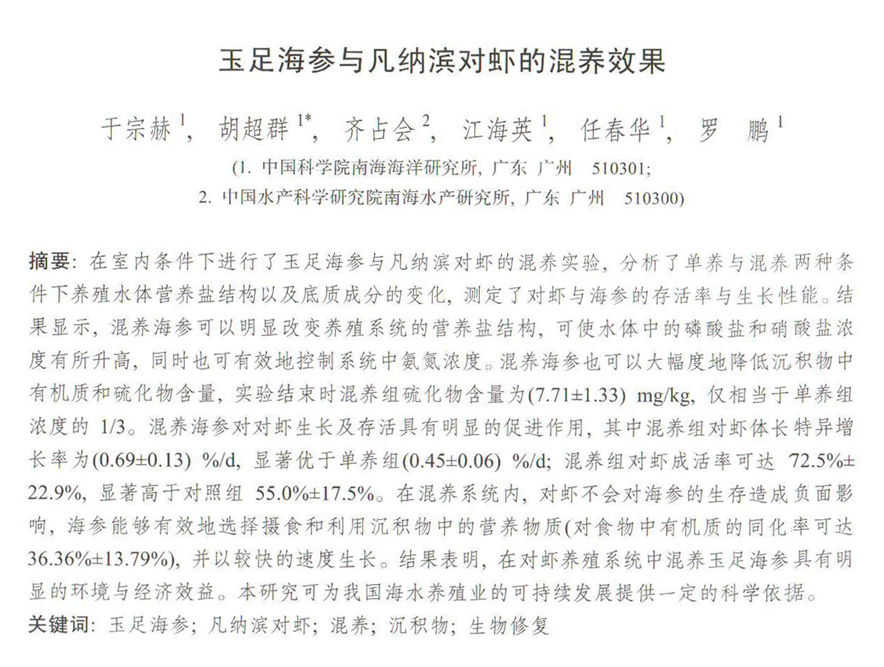 玉足海參與凡納濱對(duì)蝦的混養(yǎng)