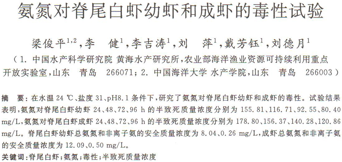 氨氮對脊尾白蝦幼蝦和成蝦的毒性試驗