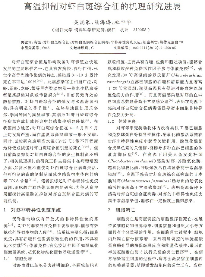 高溫抑制對蝦白斑綜合征的機(jī)理研究進(jìn)展