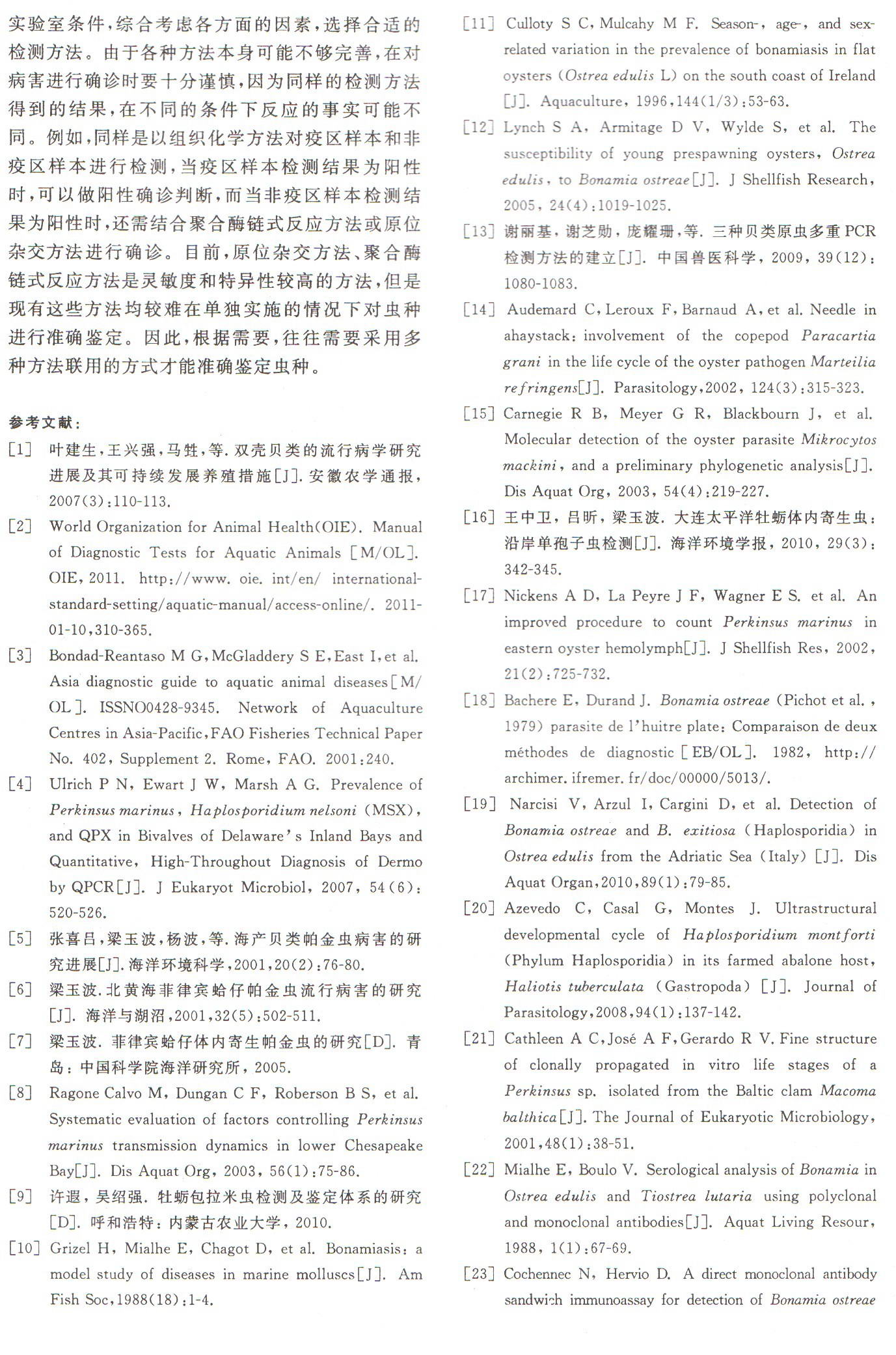 重要經(jīng)濟(jì)貝類原蟲病及其診斷技術(shù)研究進(jìn)展6