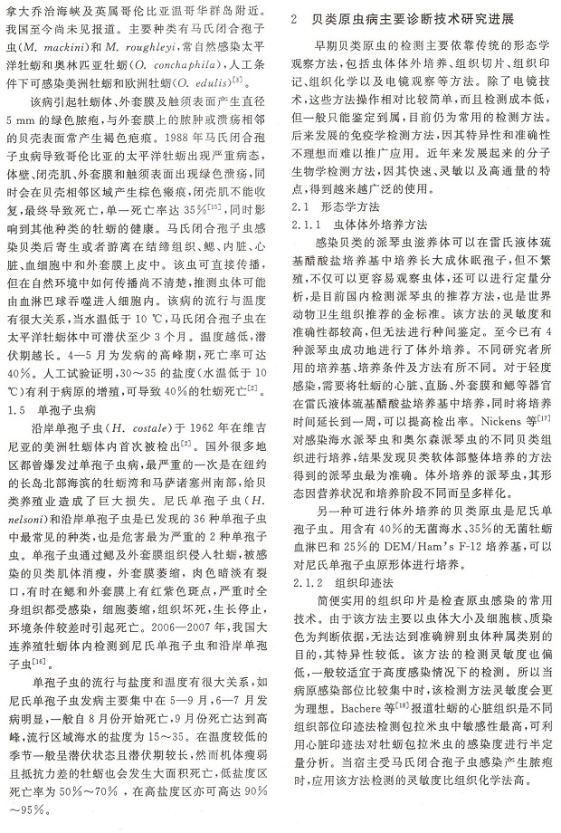 重要經(jīng)濟(jì)貝類原蟲病及其診斷技術(shù)研究進(jìn)展3