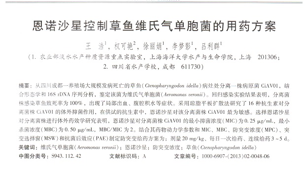 恩諾沙星控制草魚維氏氣單胞菌的用藥方案