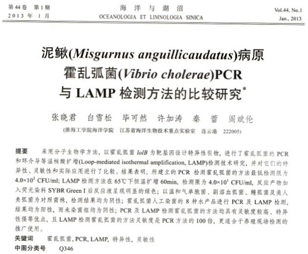 泥鰍(Misgurnus anguillicaudatus)病原霍亂弧菌(Vibrio cholerae)PCR與LAMP檢測(cè)方法的比較研究