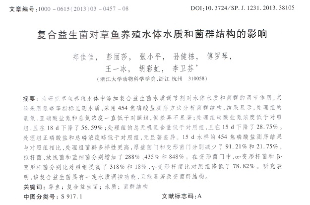 復(fù)合益生菌對草魚養(yǎng)殖水體水質(zhì)和菌群結(jié)構(gòu)的影響