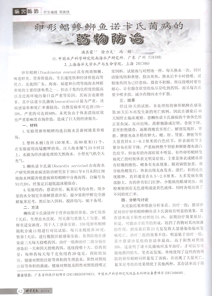 卵形鯧鲹鰤?mèng)~諾卡氏菌病的藥物防治