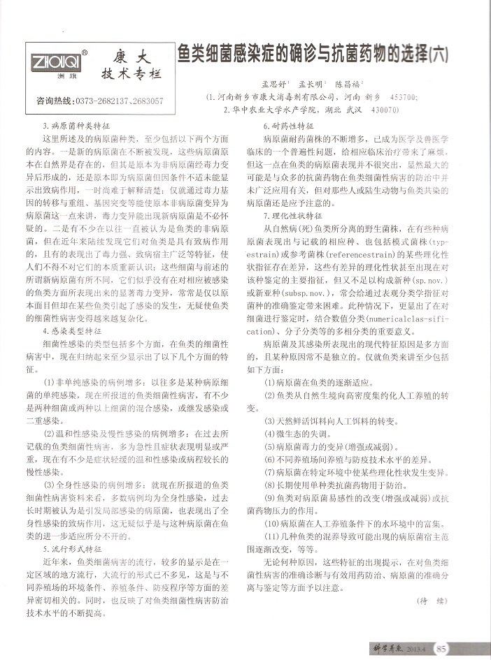 魚類細菌感染癥的確診與抗菌藥物的選擇(六)