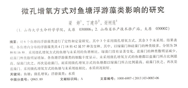 微孔增氧方式對(duì)魚塘浮游藻類影響的研究