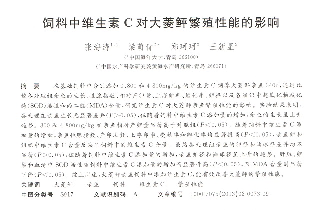 飼料中維生素C對大菱鲆繁殖性能的影響