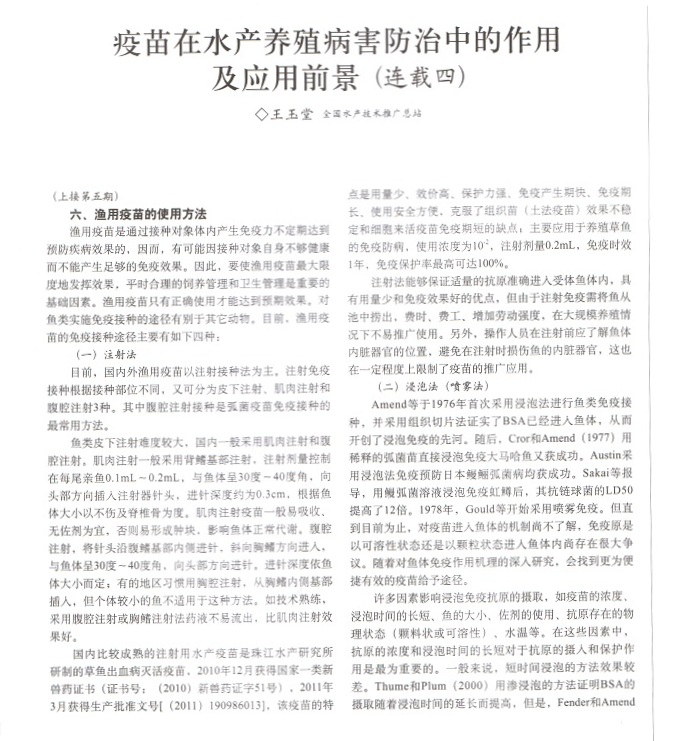 疫苗在水產(chǎn)養(yǎng)殖病害防治中的作用及應(yīng)用前景(連載四)