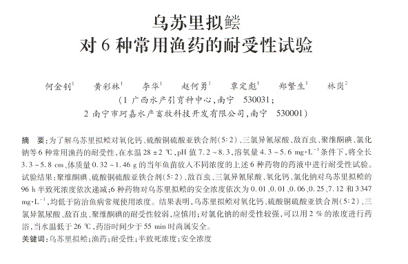 烏蘇里擬鲿對6種常用漁藥的耐受性試驗