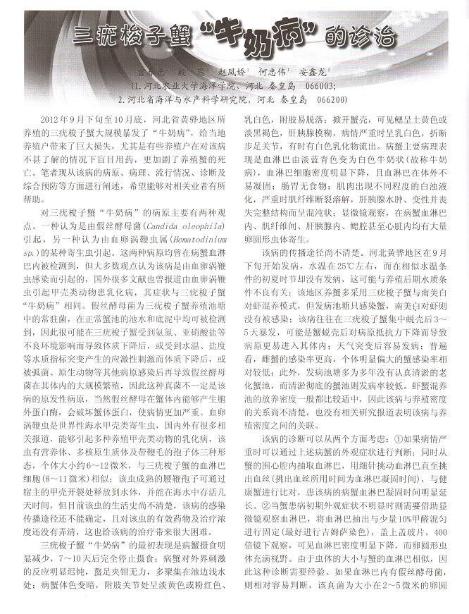 三疣梭子蟹“牛奶病”的診治