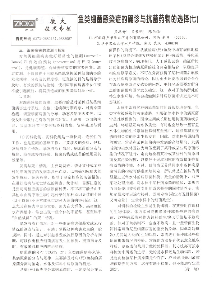 魚類細(xì)菌感染癥的確診與抗菌藥物的選擇(七)