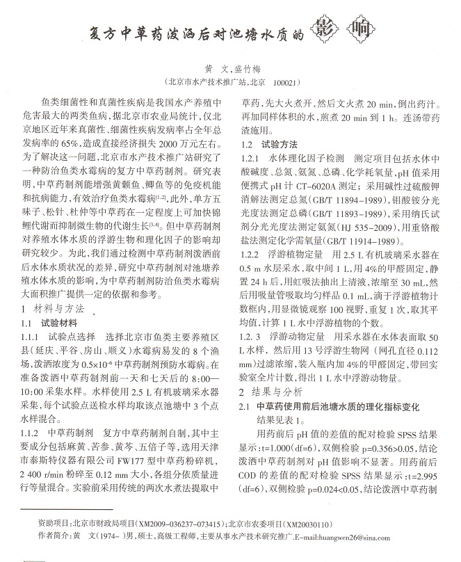 復(fù)方中草藥潑灑后對(duì)池塘水質(zhì)的影響