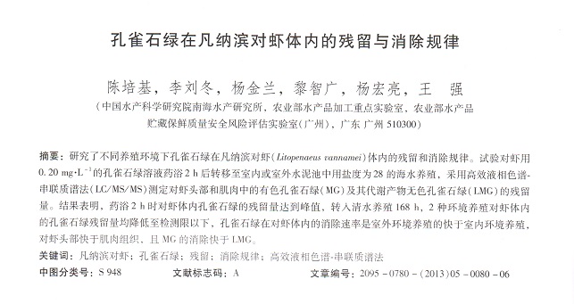 孔雀石綠在凡納濱對蝦體內(nèi)的殘留與消除規(guī)律