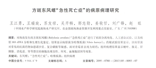 方斑東風(fēng)螺“急性死亡癥”的病原病理研究