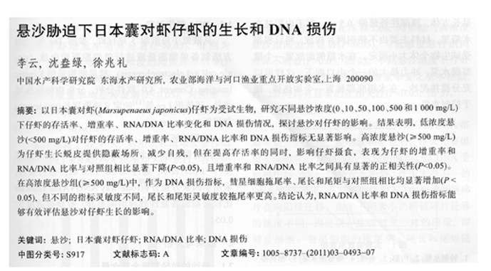 懸沙脅迫下日本囊對蝦仔蝦的生長和DNA損傷