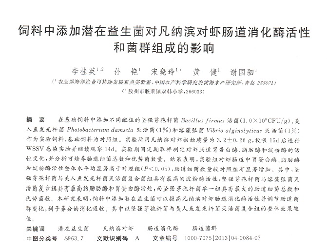 飼料中添加潛在益生菌對(duì)凡納濱對(duì)蝦腸道消化酶活性和菌群組成的影響