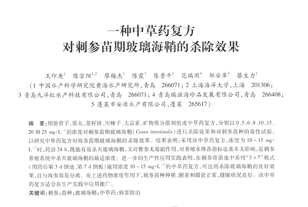一種中草藥復(fù)方對刺參苗期玻璃海鞘的殺除效果