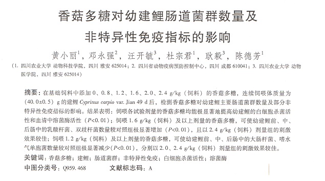 香菇多糖對(duì)幼建鯉腸道菌數(shù)量及非特異性免疫指標(biāo)的影響