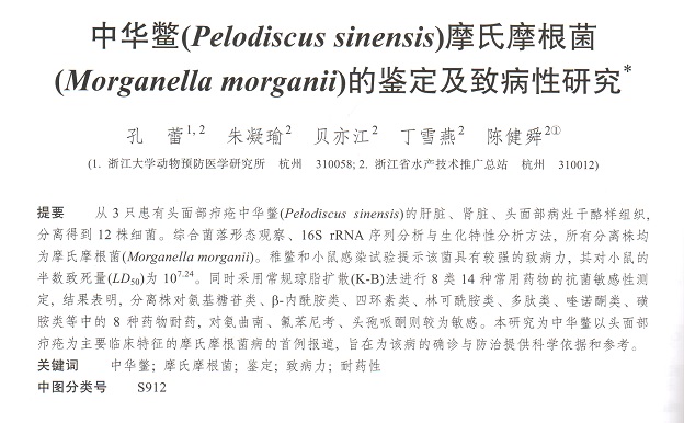 中華鱉(Pelodiscus&nbspsinensis)摩氏摩根菌(Morganella morganii)的鑒定及疾病性研究