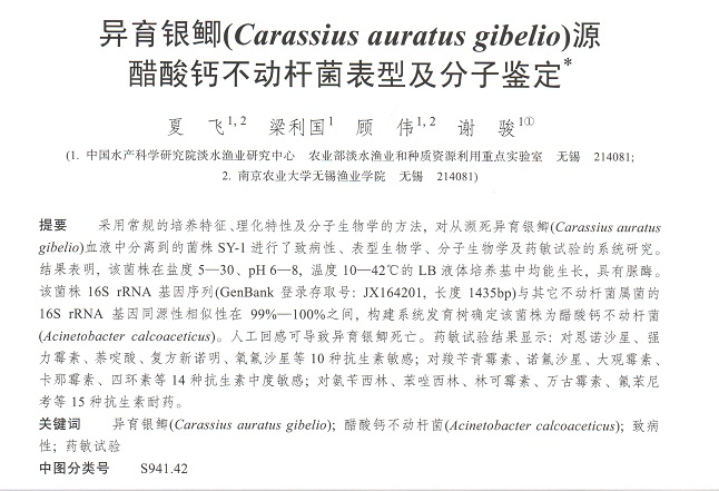 異育銀鯽(Carassius auratus gibelio)源醋酸鈣不動(dòng)桿菌表型及分子鑒定