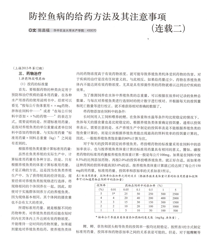 防控魚(yú)病的給藥方法及其注意事項(xiàng)(連載二)