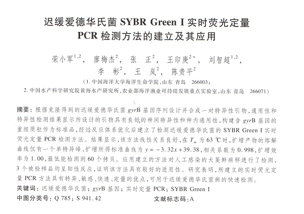 遲緩愛(ài)德華氏菌SYBR Green I實(shí)時(shí)熒光定量PCR檢測(cè)方法的建立及其應(yīng)用