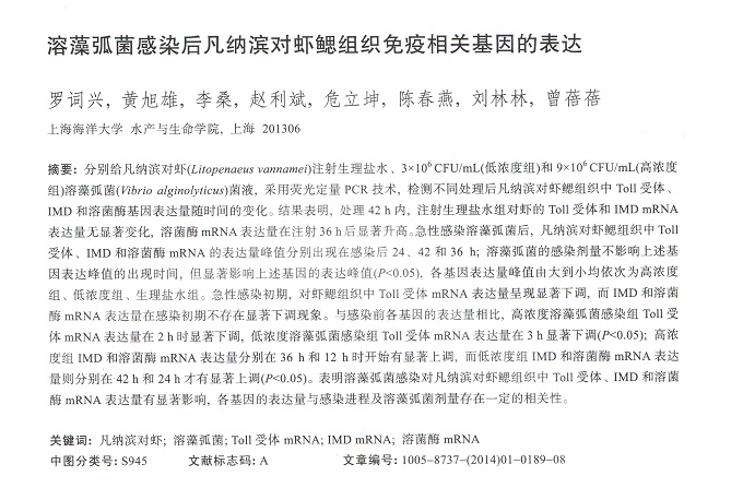 溶藻弧菌感染后凡納濱對(duì)蝦鰓組織免疫相關(guān)基因的表達(dá)