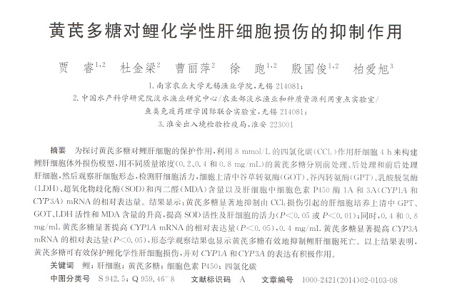 黃芪多糖對(duì)鯉化學(xué)性肝細(xì)胞損傷的抑制作用
