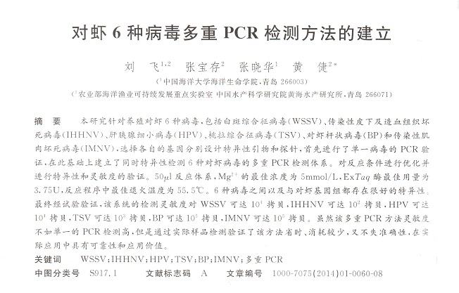 對(duì)蝦6種病毒多重PCR檢測(cè)方法的建立