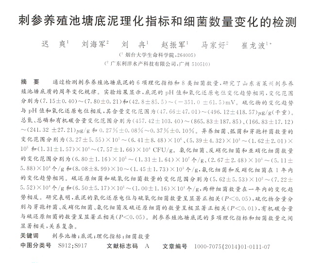 刺參養(yǎng)殖池塘底泥理化指標和細菌數(shù)量變化的檢測