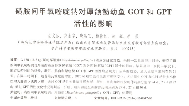 磺胺間甲氧嘧啶鈉對厚頜魴幼魚GOTR和GPT活性的影響