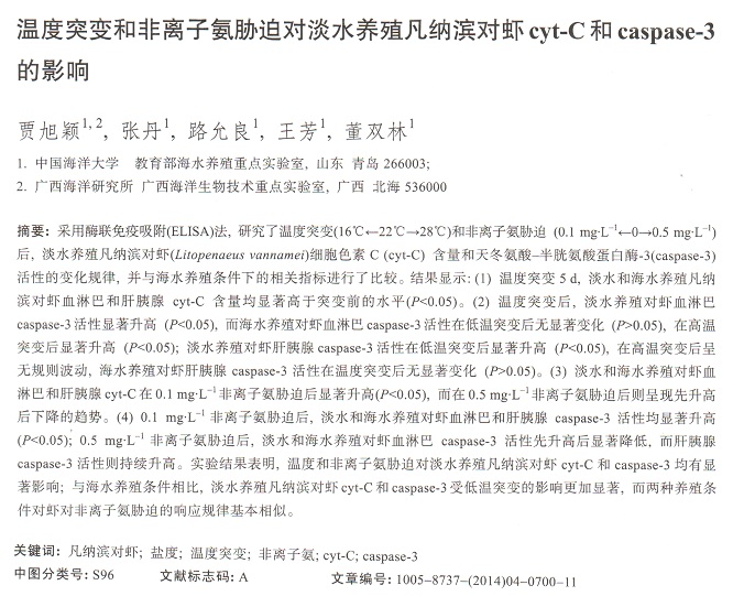 溫度突變和非離子氨脅迫對淡水養(yǎng)殖凡納濱對蝦cyt-C和caspase-3的影響