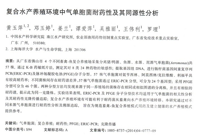 復(fù)合水產(chǎn)養(yǎng)殖環(huán)境中氣單胞菌耐藥性及其同源分析