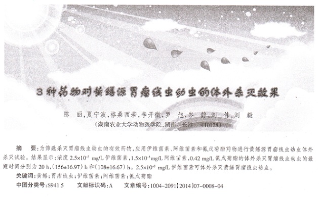 3種藥物對黃鱔源胃瘤線蟲幼蟲的體外殺滅效果