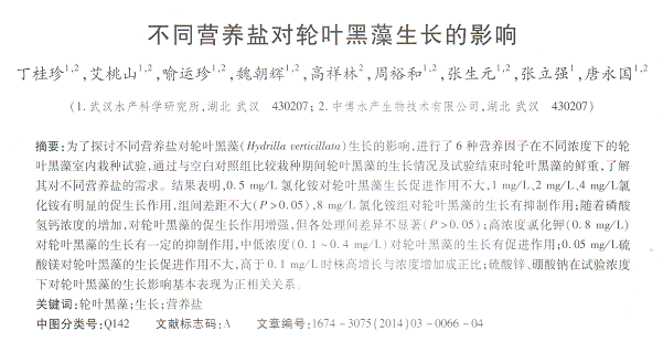 不同營(yíng)養(yǎng)鹽對(duì)輪葉黑藻生長(zhǎng)的影響