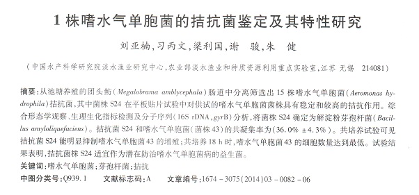 1株嗜水氣單胞菌的拮坑菌鑒定及其特性研究